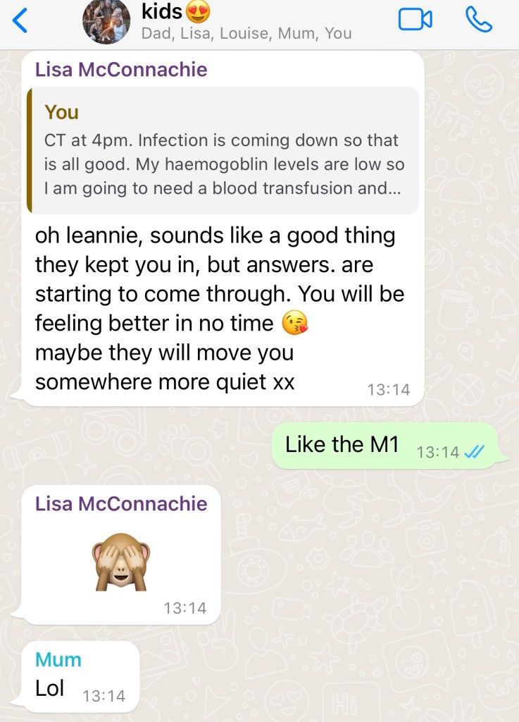 So now the next part of the waiting game begins, this is the part where we watch for the infection markers in my blood results to decline and prove that the IV antibiotics are working and wait for this CT scan, (The chest X-ray thankfully was clear)!