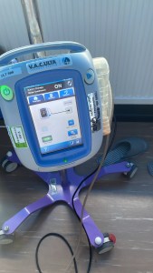 I think I have explained Vera’s function before … but basically the fancy dressing in the middle of my wound, the plastic tube with the black foam, is attached to a fancy ‘VAC’ device I have named Vera. A nurse creates a dressing over the black foam and the vacuum pack is sealed and Vera is attached and sucks out any badness from my wound and allows it to create a clean and dry environment for the healing process to take place. A wet wound will not heal. Simple.