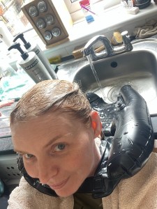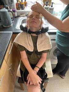 Hair washed and now Kerry wants to talk … she wants to talk through my options and what she thinks I should do. I however do not 😂 I explain that my expectation is low, I am still half expecting a head shave so anything that leaves me with more hair than this is a win so crack on and do what you think is best! ✂️