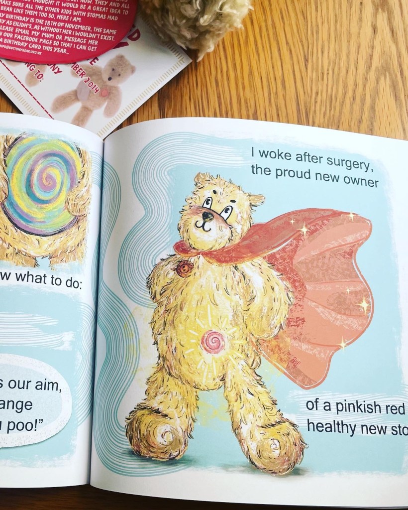 My new buddy is delivered today today A bear named Buttony, along with the sweetest book explaining the stoma to children. I am excited to have a tea party with Jaxon to talk about it all.