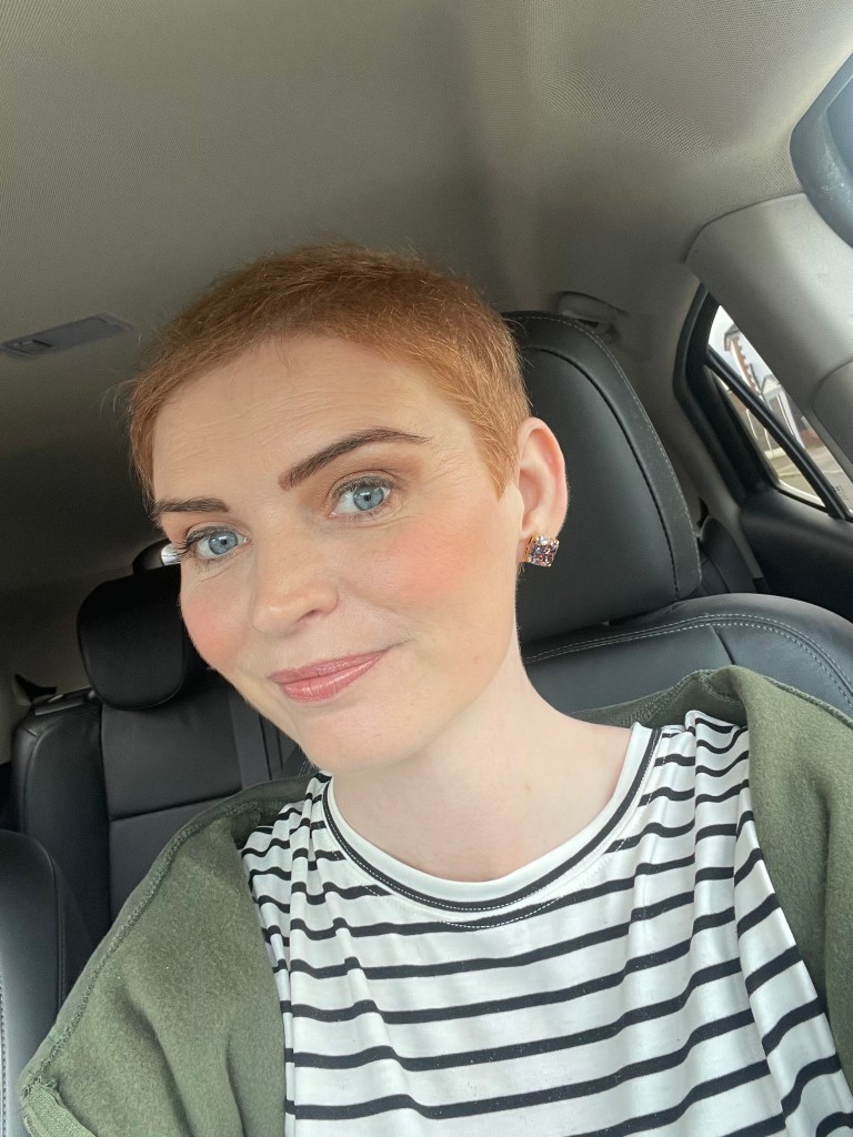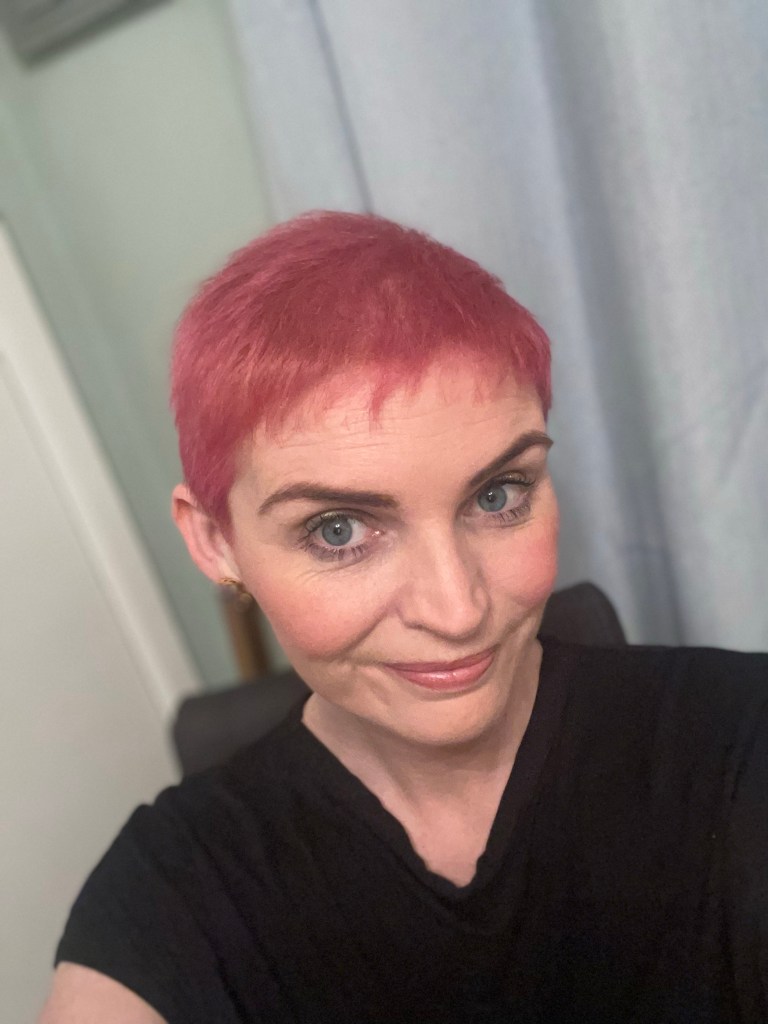 I have a super awesome haircut that I would NEVER have been brave enough to do in any other time. Most of my hair fell out any way, so we shaved the rest and dyed it pink … seems like an obvious thing to do really!